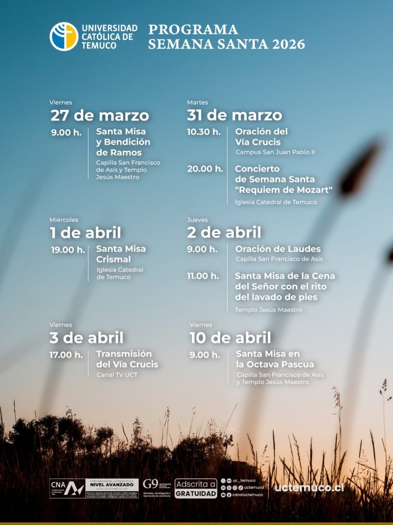 Les invitamos a vivir la Semana Santa y el tiempo de Pascua en la Universidad Católica de Temuco.